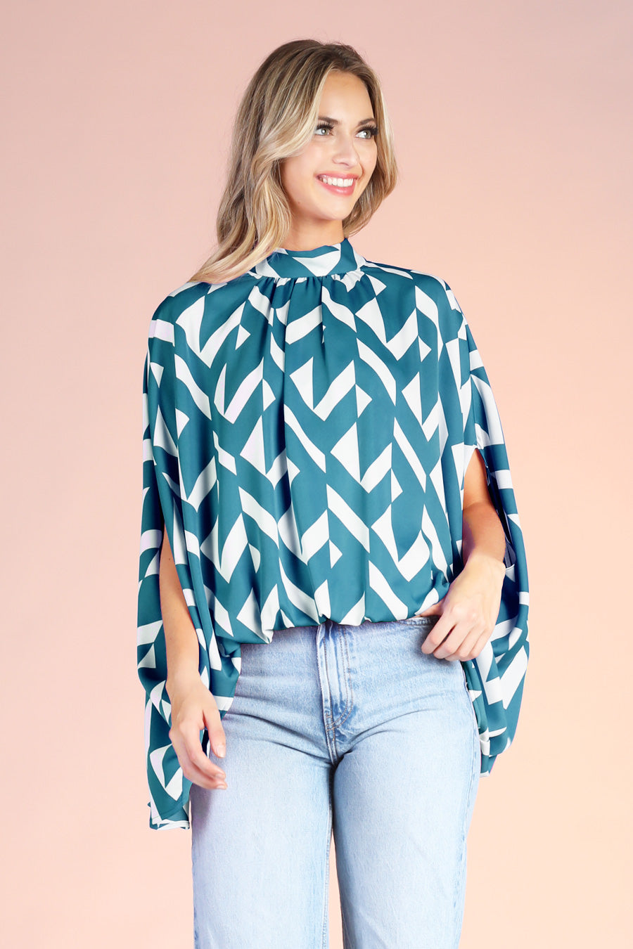 It's time to add some fun sweetness to your girls night looks with our new Nostalgeo Mock Neck Caftan Top! Designed with a mock neck, kimono style sleeves and an elastic waistband for a complete flattering look.